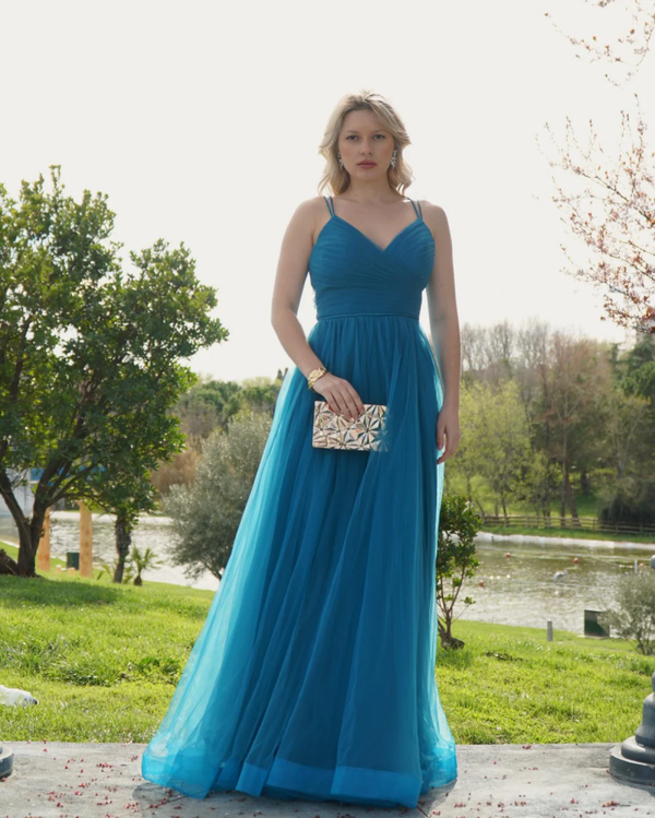 Estilo: romántico y elegante, perfecto para bodas, fiestas formales y eventos especiales de tarde o noche.